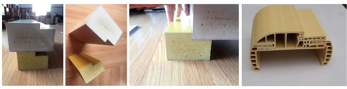 PVC/WPC Door Frame is mainly used for door and window profile, indoor home decoration, indoor and outdoor guardrail and other decorative material. PVC/WPC door frame production line–PVC/WPC door frame is an ideal choice for decoration of villa, home, hotel, shopping mall and office.
