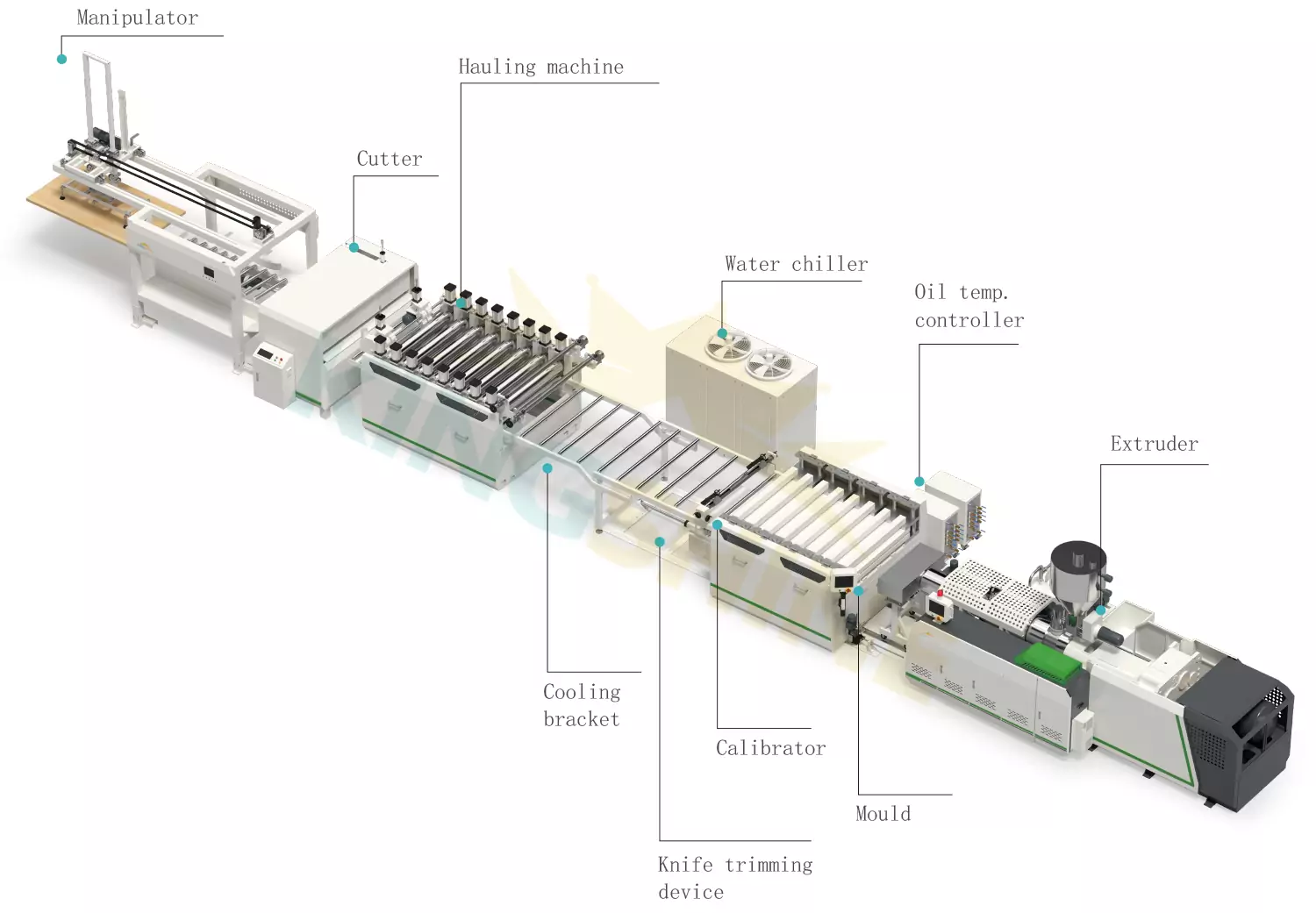 WPC flooring production line is an automated equipment specially used to produce environmentally friendly wood plastic flooring. WPC floor combines the advantages of wood fiber (or plant fiber) and plastic (such as PE, PP, PVC, etc.). The WPC floor produced has the characteristics of waterproof, moisture-proof, wear-resistant and environmentally friendly, and is widely used in home, commercial and outdoor scenes. Kingshine WPC flooring extrusion line realizes full-process automated production from raw materials to finished products! Core technologies such as high-precision extrusion ensure zero defects in the floor.